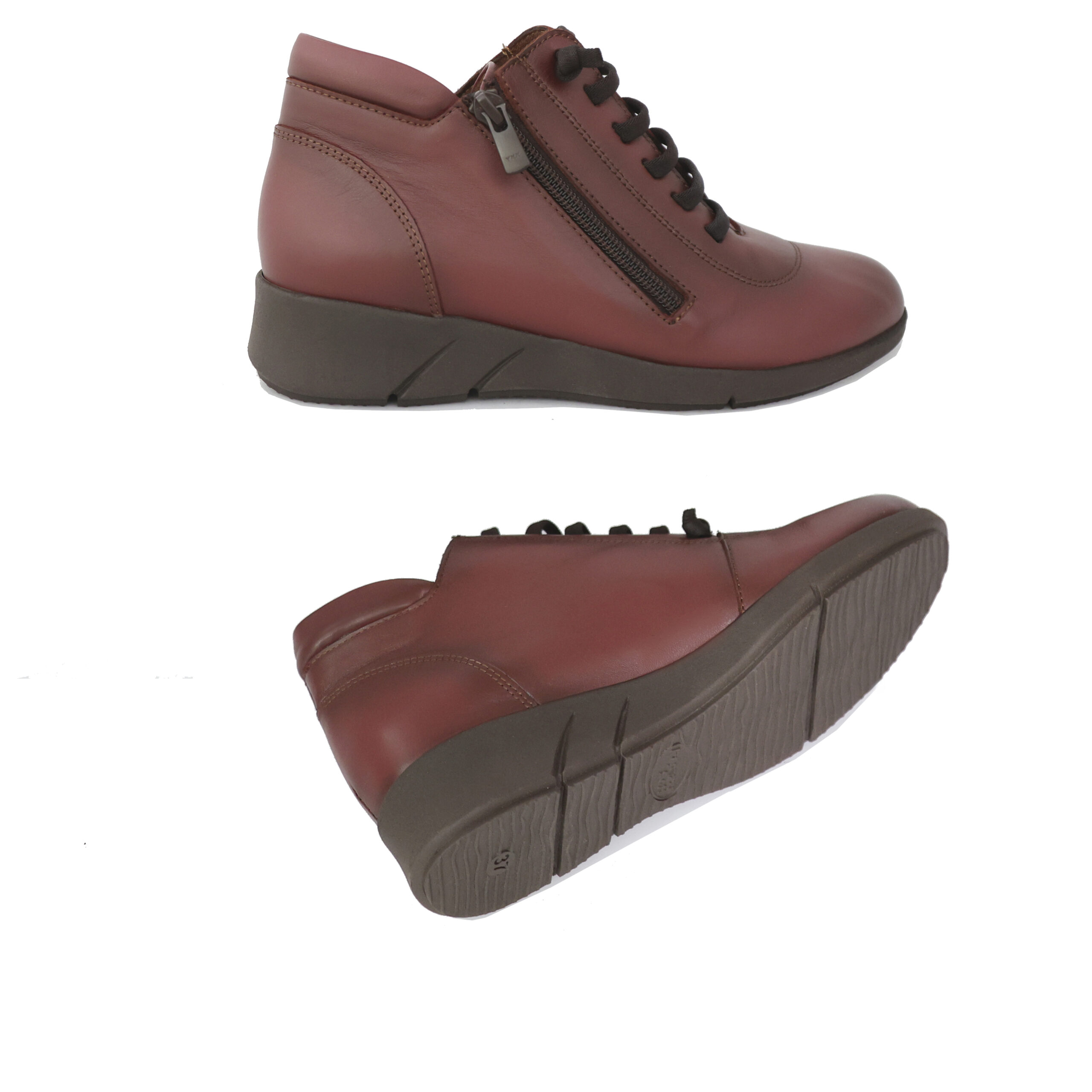 Τα Ragazza Μποτάκια 0412-1 σε μπορντώ γνήσιο δέρμα είναι η ιδανική επιλογή για άνεση και στυλ σε κάθε καθημερινή σου εμφάνιση. Με πρακτικό πλαϊνό φερμουάρ και κορδόνια για τέλεια εφαρμογή, προσφέρουν σταθερό κράτημα και ευκολία στο φόρεμα. Η ανατομική εσωτερική επένδυση εξασφαλίζει ξεκούραστη αίσθηση όλη μέρα, ενώ η μαλακή wedge σόλα προσθέτει διακριτικό ύψος χωρίς να κουράζει. Η καθαρή γραμμή του σχεδίου και η μαύρη απόχρωση τα κάνουν ιδανικά για κάθε συνδυασμό — από jeans μέχρι υφασμάτινα παντελόνια ή casual φορέματα. Ένα ζευγάρι Ragazza που συνδυάζει την άνεση με τη διακριτική κομψότητα.