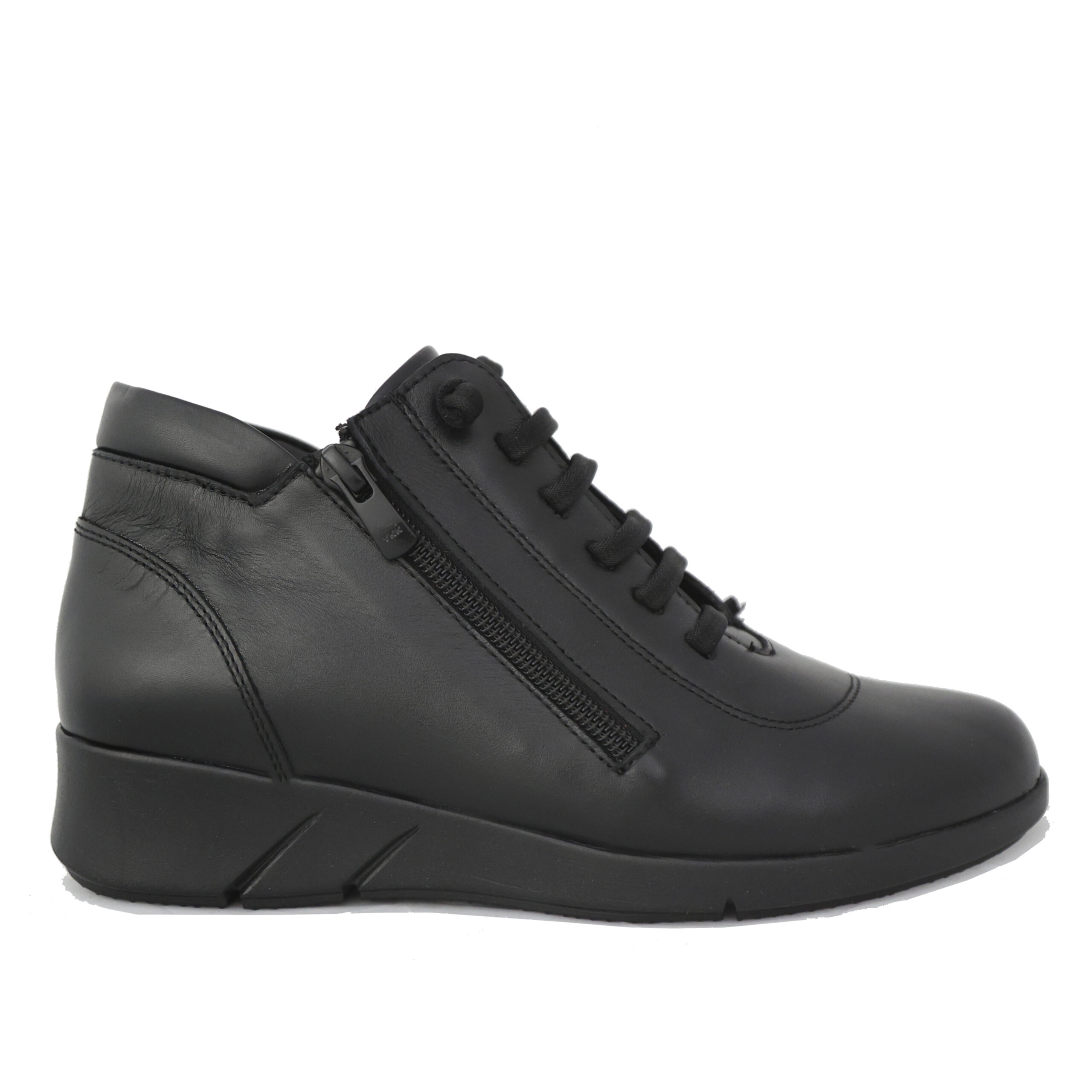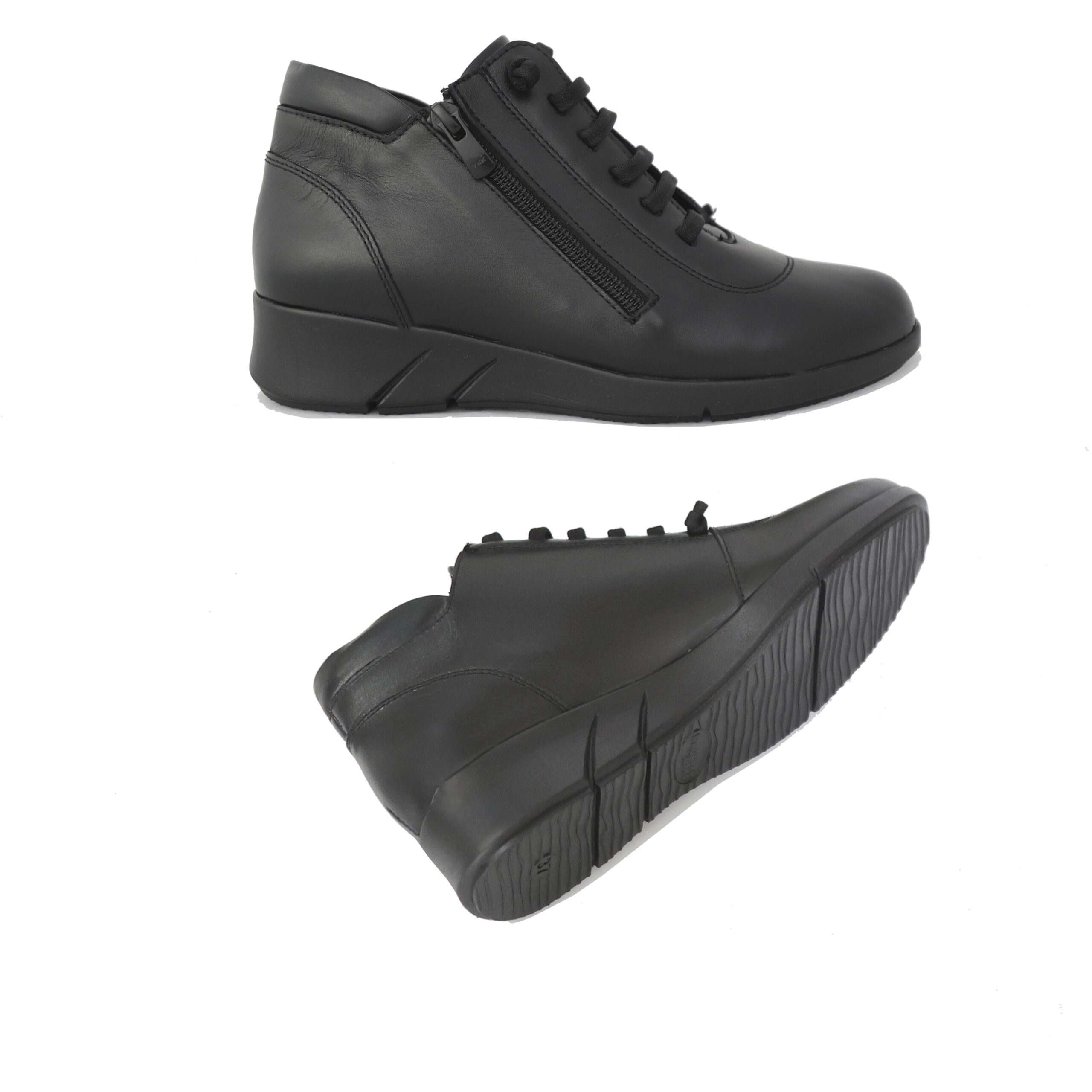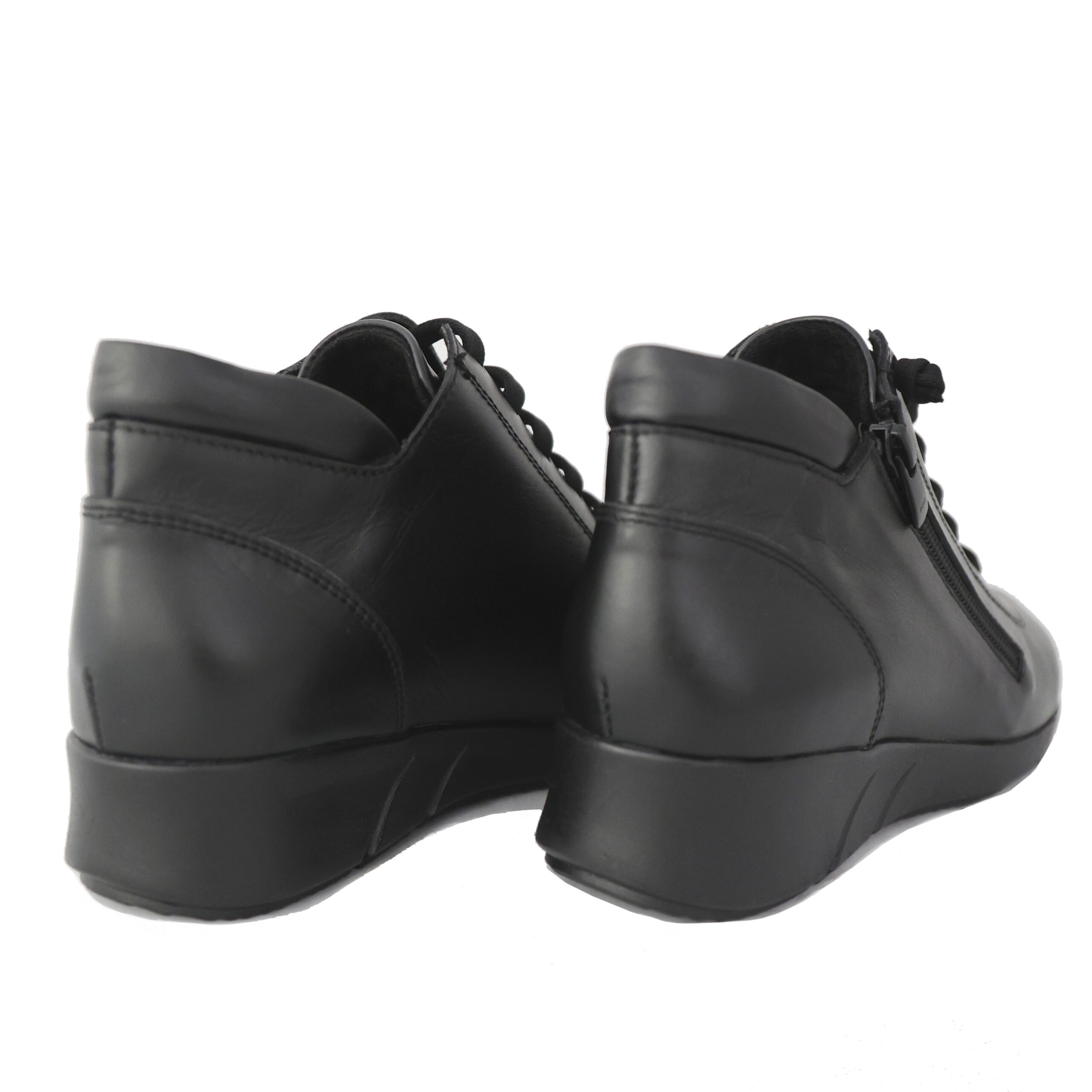 Τα Ragazza Μποτάκια 0412 σε μαύρο γνήσιο δέρμα είναι η ιδανική επιλογή για άνεση και στυλ σε κάθε καθημερινή σου εμφάνιση. Με πρακτικό πλαϊνό φερμουάρ και κορδόνια για τέλεια εφαρμογή, προσφέρουν σταθερό κράτημα και ευκολία στο φόρεμα. Η ανατομική εσωτερική επένδυση εξασφαλίζει ξεκούραστη αίσθηση όλη μέρα, ενώ η μαλακή wedge σόλα προσθέτει διακριτικό ύψος χωρίς να κουράζει. Η καθαρή γραμμή του σχεδίου και η μαύρη απόχρωση τα κάνουν ιδανικά για κάθε συνδυασμό — από jeans μέχρι υφασμάτινα παντελόνια ή casual φορέματα. Ένα ζευγάρι Ragazza που συνδυάζει την άνεση με τη διακριτική κομψότητα.
