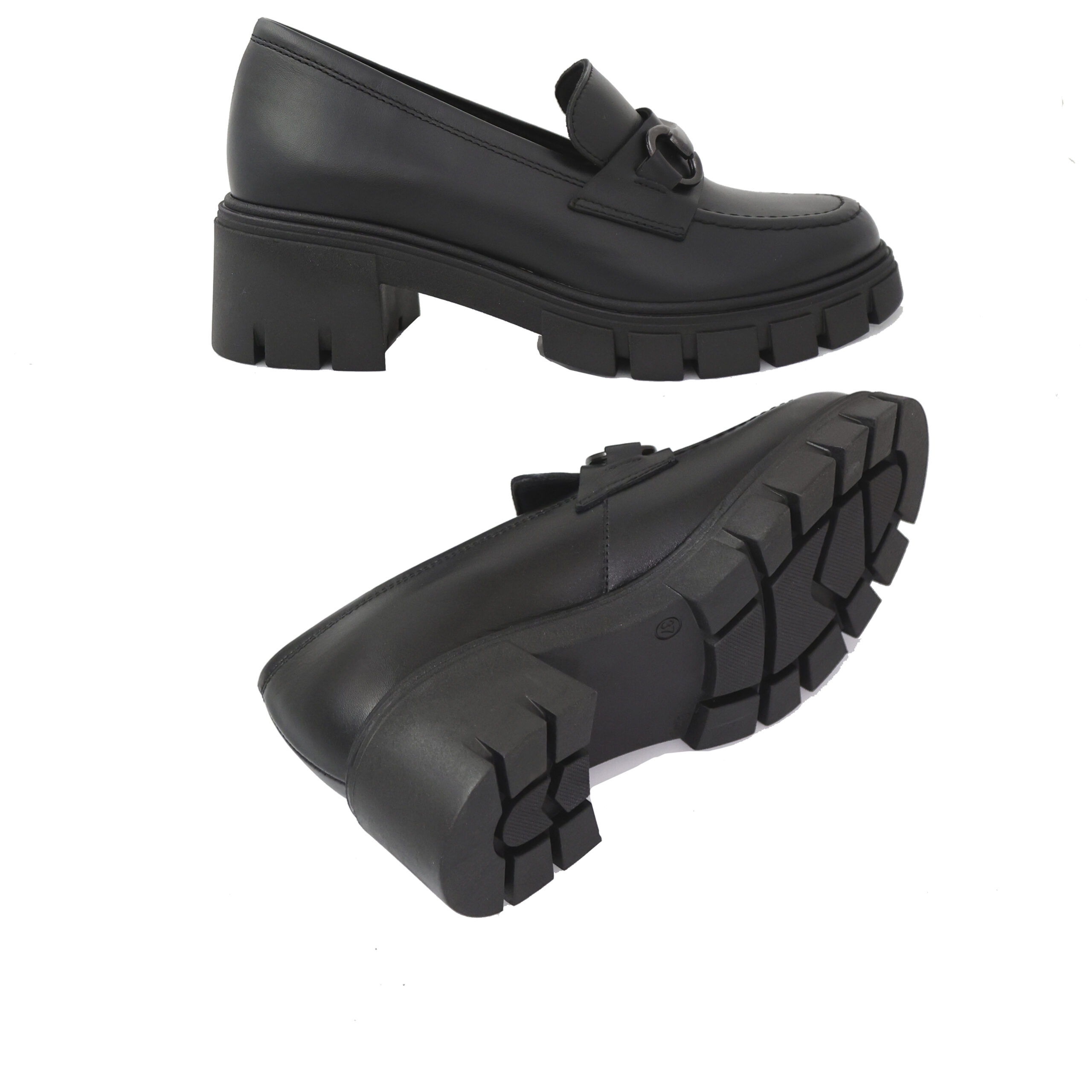 Τα Ragazza Γυναικεία Μοκασίνια 0748 σε μαύρο δέρμα συνδυάζουν άνεση και στυλ με ένα μοντέρνο, ανανεωμένο design. Το block τακούνι ύψους 5.5 εκ. χαρίζει θηλυκότητα και σταθερότητα, καθιστώντας τα ιδανικά για πολύωρη χρήση. Η ποιοτική δερμάτινη κατασκευή προσφέρει αντοχή και κομψή εφαρμογή, ενώ η μαλακή επένδυση εξασφαλίζει ευχάριστη αίσθηση σε κάθε βήμα. Το διακριτικό φινίρισμα και η στρογγυλή μύτη προσδίδουν στο παπούτσι κλασικό χαρακτήρα, ιδανικό για office, business ή casual chic σύνολα. Ένα ζευγάρι Ragazza που συνδυάζει διαχρονικότητα και σύγχρονη αισθητική με άνεση όλη μέρα.