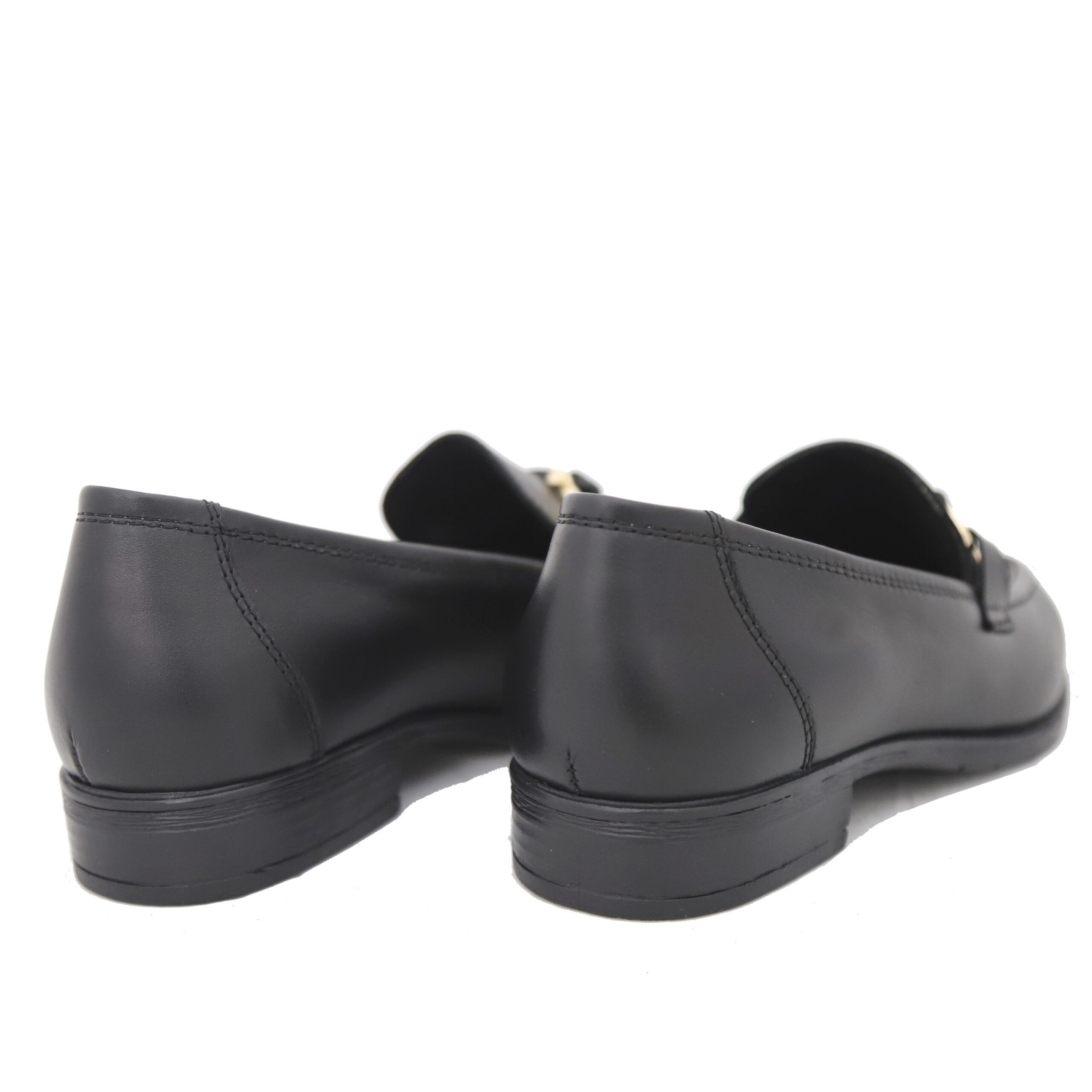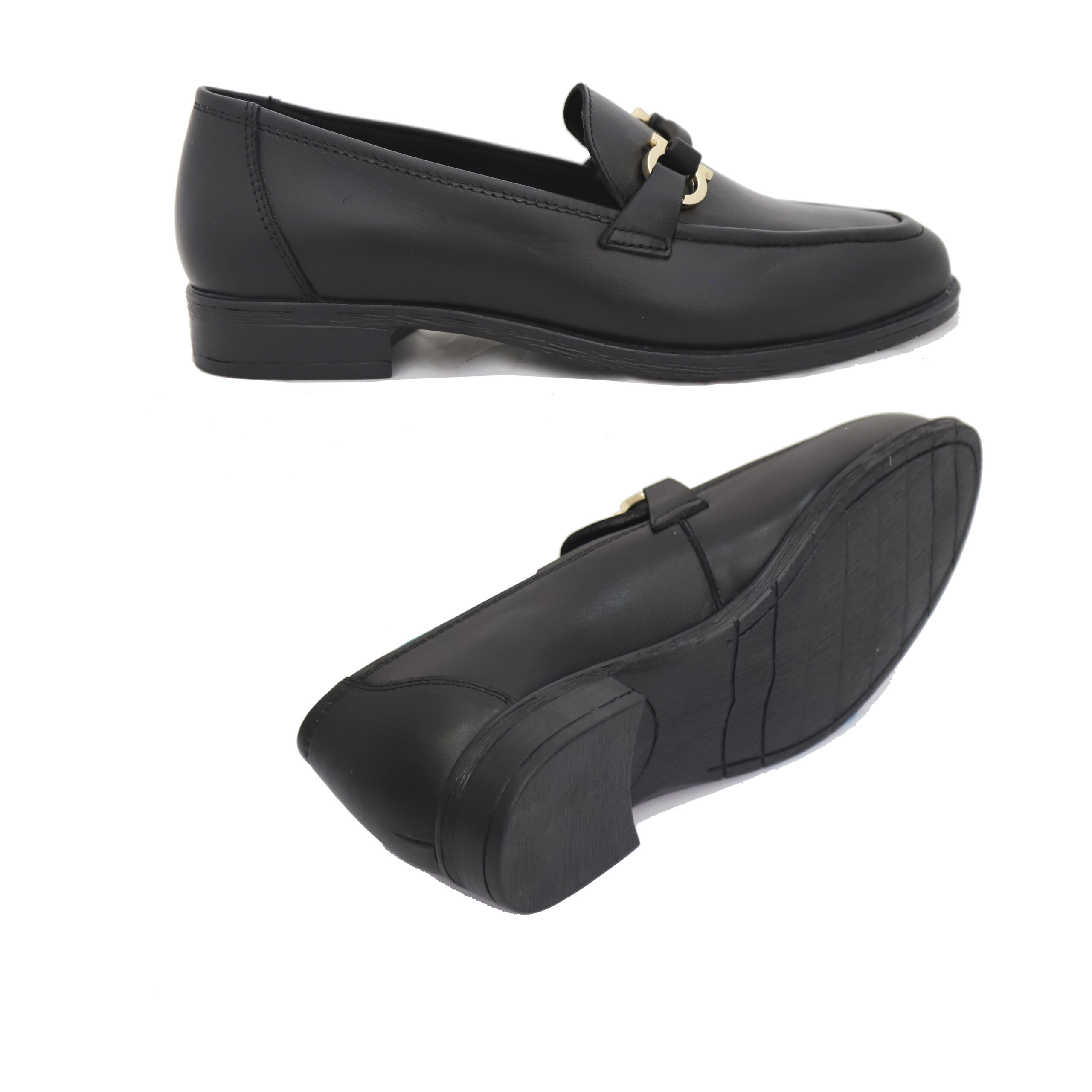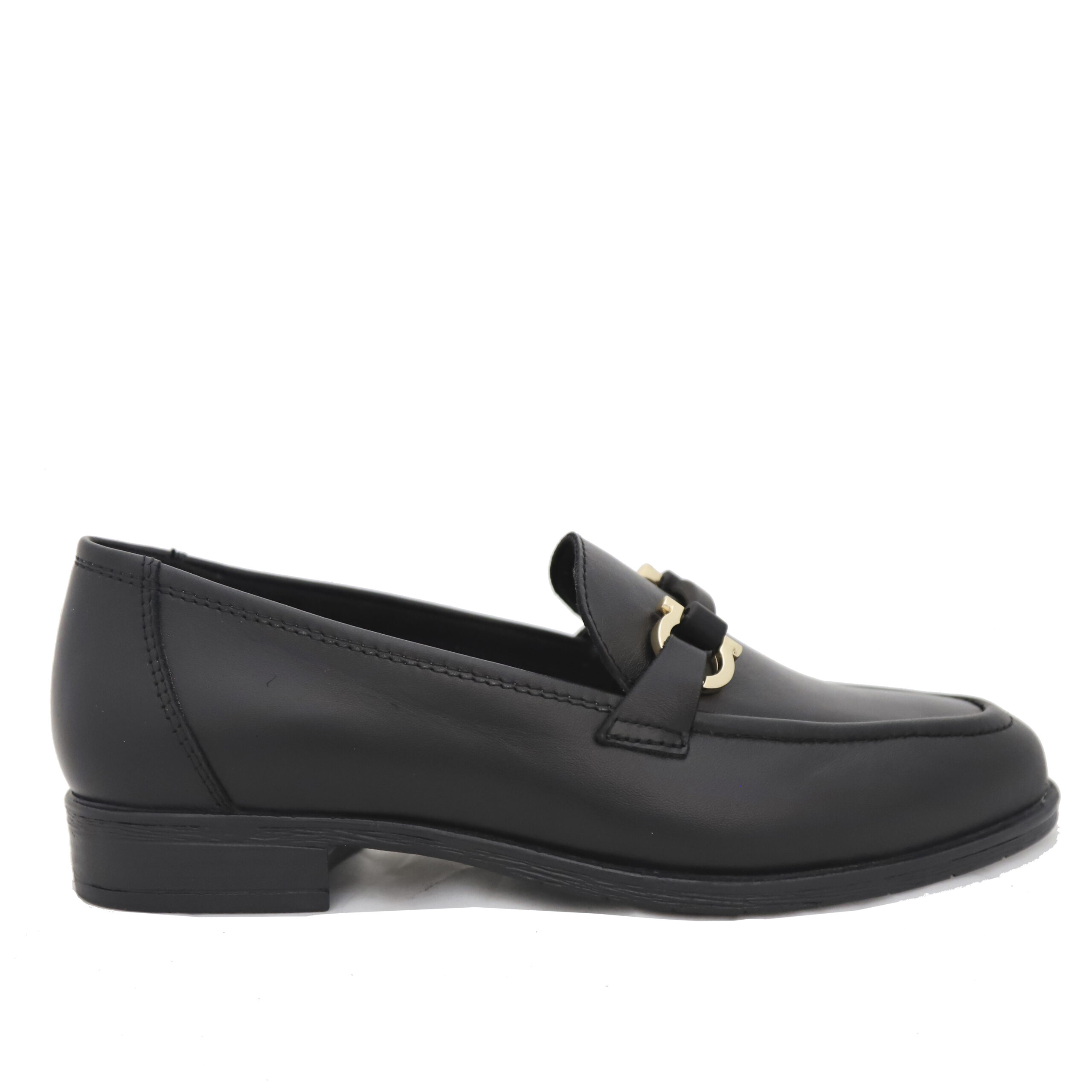 Το γυναικείο δερμάτινο μοκασίνι Ragazza 0380 σε μαύρο χρώμα είναι η απόλυτη επιλογή για γυναίκες που αναζητούν κομψότητα και διαχρονικό στυλ στην καθημερινότητα τους. Κατασκευασμένο από γνήσιο δέρμα υψηλής ποιότητας, εξασφαλίζει άνεση και αντοχή στη χρήση, ενώ η μαλακή εσωτερική επένδυση προσφέρει ευχάριστη εφαρμογή όλη μέρα. Η διακριτική χρυσή λεπτομέρεια στο πάνω μέρος δίνει μια πολυτελή πινελιά, καθιστώντας το ιδανικό για office looks, επαγγελματικές συναντήσεις αλλά και casual chic εμφανίσεις. Ο χαμηλός τακούνι παρέχει σταθερότητα, ενώ η αντιολισθητική σόλα συμβάλλει στην ασφάλεια του βήματος. Ένα παπούτσι που συνδυάζει την άνεση με την κομψότητα, για γυναίκες που θέλουν να ξεχωρίζουν σε κάθε περίσταση.