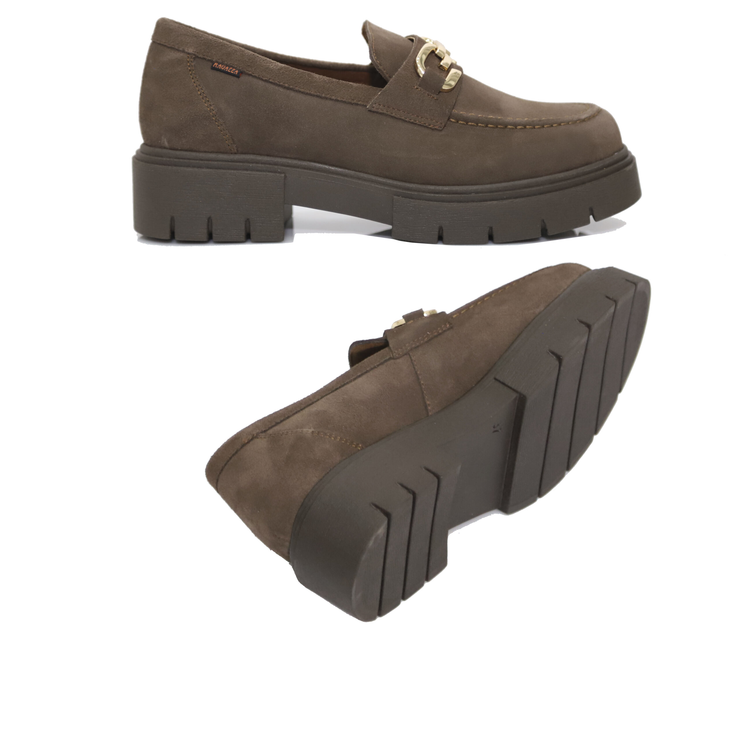 Τα Ragazza Loafers 0190-1 σε καφέ καστόρι δέρμα συνδυάζουν κομψότητα και άνεση. Με χρυσή αγκράφα, cushioned πάτο και τεχνολογία Dryflex για ευλυγισία και σταθερότητα. Ύψος τακουνιού 4 εκ., ιδανικά για casual και καθημερινές εμφανίσεις.