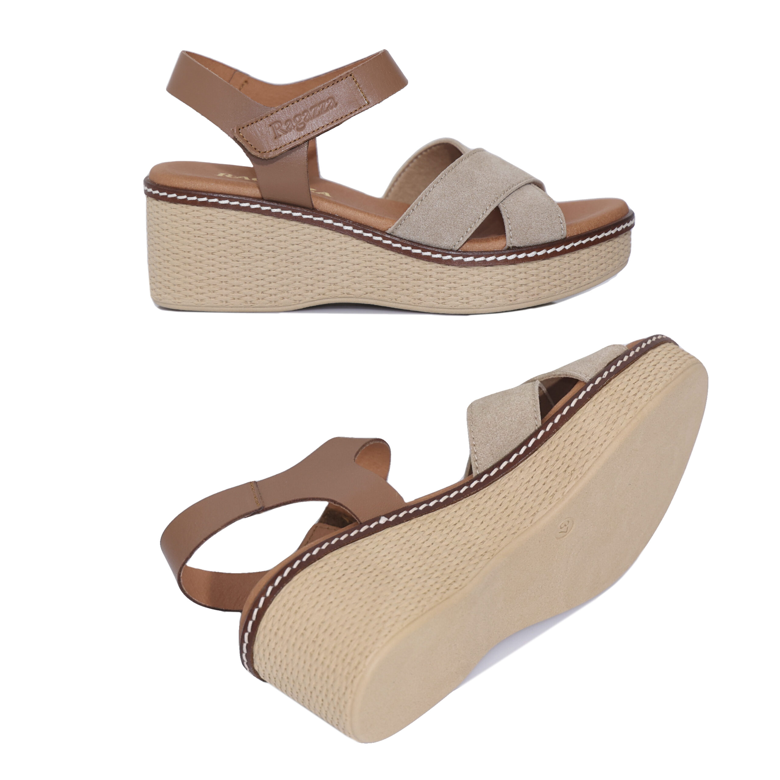 Οι Ragazza πλατφόρμες 0376 σε ταμπά και μπεζ αποτελούν ιδανική επιλογή για άνετες και κομψές καλοκαιρινές εμφανίσεις. Κατασκευάζονται από suede δέρμα και eco leather, προσφέροντας ανθεκτικότητα και φυσική αίσθηση στο πόδι. Ο ανατομικός σχεδιασμός προσαρμόζεται στη φόρμα του πέλματος και εξασφαλίζει σταθερό και ξεκούραστο βάδισμα. Η πλατφόρμα ύψους 6,5 cm σε συνδυασμό με τη φιάπα 3 cm προσφέρει σωστή ισορροπία και απορρόφηση κραδασμών. Το velcro κούμπωμα διευκολύνει την εφαρμογή και προσφέρει άψογη σταθερότητα. Ο διαχρονικός συνδυασμός ταμπά και μπεζ αποχρώσεων ταιριάζει εύκολα με κάθε outfit. Ιδανικές για καθημερινή χρήση, από το πρωί μέχρι το βράδυ.