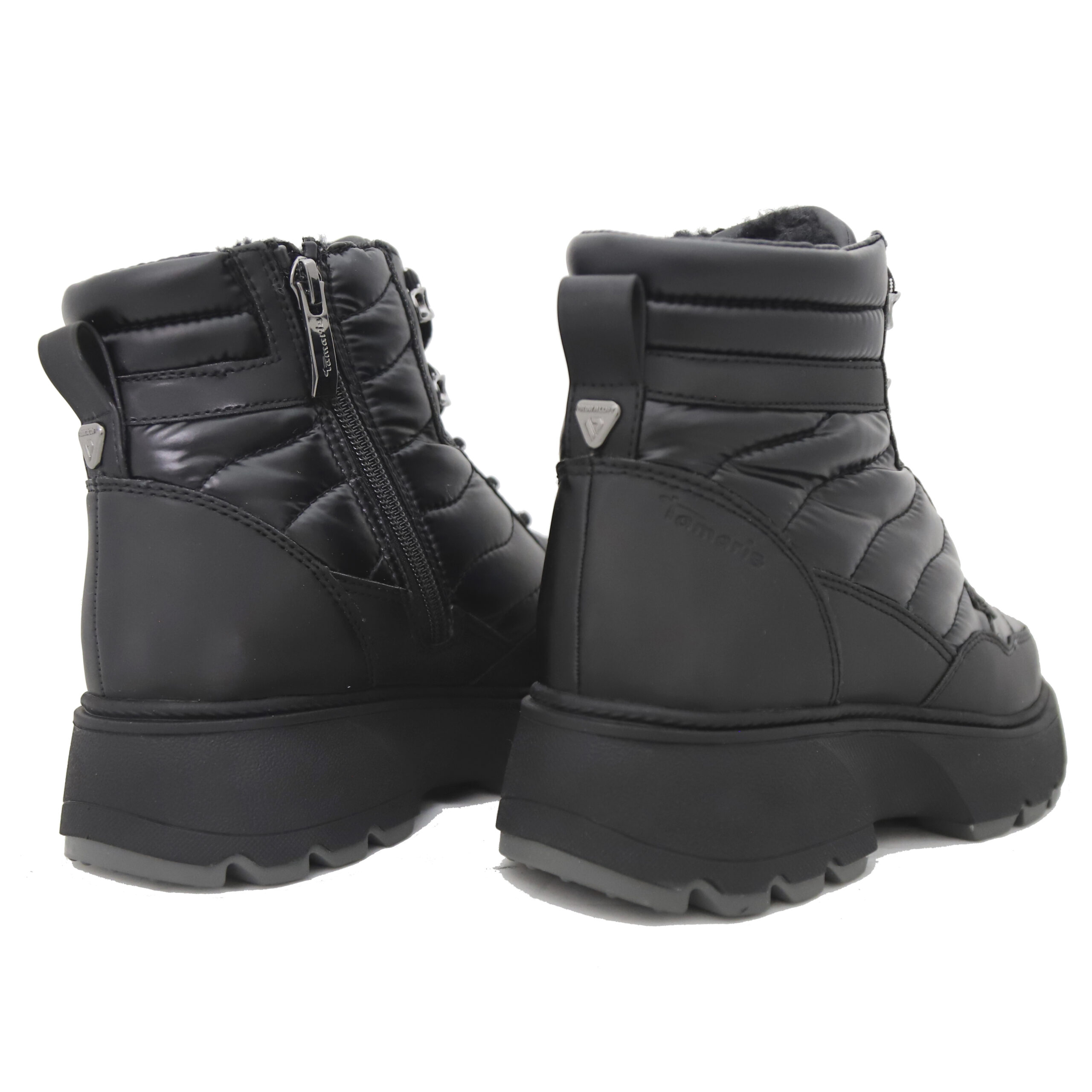 Τα Tamaris WL Lace Boots Essentials 1-26245-45-001 είναι σχεδιασμένα για γυναίκες που αγαπούν τον urban sporty χαρακτήρα και αναζητούν άνεση σε κάθε τους βήμα. Με chunky, μοντέρνα σόλα και ύψος τακουνιού 5 εκ., χαρίζουν σταθερότητα και δυναμικό look. Η τεχνολογία Primaloft προσφέρει ζεστασιά χωρίς βάρος, ενώ η εσωτερική υφασμάτινη επένδυση αγκαλιάζει το πόδι απαλά. Ο αποσπώμενος πάτος ενισχύει την πρακτικότητα, προσφέροντας δυνατότητα προσαρμογής. Το διπλό κλείσιμο με φερμουάρ και κορδόνια διευκολύνει την εφαρμογή, ενώ η στρογγυλή μύτη ολοκληρώνει ένα στυλ που συνδυάζει άνεση και κομψότητα. Ιδανικά για χειμερινές βόλτες, φθινοπωρινές αποδράσεις και καθημερινή χρήση, αυτά τα μποτάκια γίνονται ο απόλυτος σύμμαχος στη σεζόν.