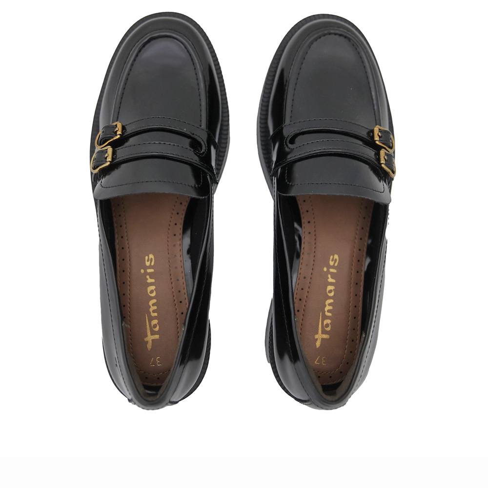 Με τα Tamaris Loafers 1-24348-45-001 από τη συλλογή HW 2025, κάνεις κάθε εμφάνιση ξεχωριστή. Το μαύρο, γυαλιστερό φινίρισμα συνδυάζεται με διπλές χρυσές αγκράφες και σφηνοειδή πλατφόρμα 3 εκ., προσφέροντας κομψότητα και άνεση κάθε στιγμή της ημέρας.