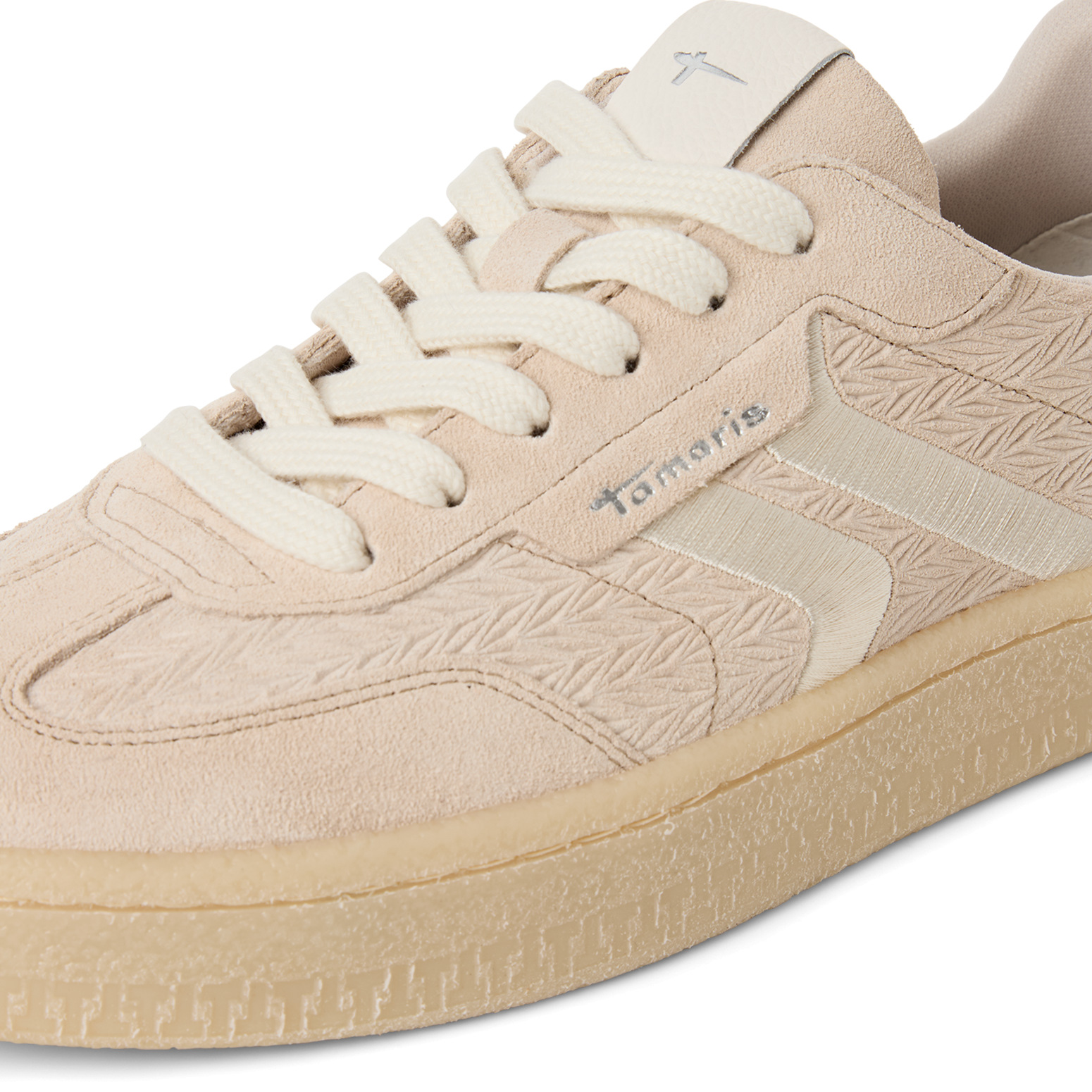 Τα Tamaris γυναικεία sneakers 1-23723-44-532 σε μπεζ δερμα-δερματίνη συνδυάζουν μοντέρνο σχεδιασμό και καθημερινή άνεση. Η τεχνολογία Comfort-Lining και ο αποσπώμενος πάτος προσφέρουν ευχάριστη εφαρμογή και ξεκούραστο περπάτημα όλη μέρα. Η σφηνοειδής σόλα ύψους 3 cm χαρίζει σταθερότητα και ελαφριά ανύψωση, ενώ το πρακτικό κλείσιμο με κορδόνια και η στρογγυλή μύτη ολοκληρώνουν ένα άνετο sneaker ιδανικό για casual εμφανίσεις και καθημερινές δραστηριότητες.