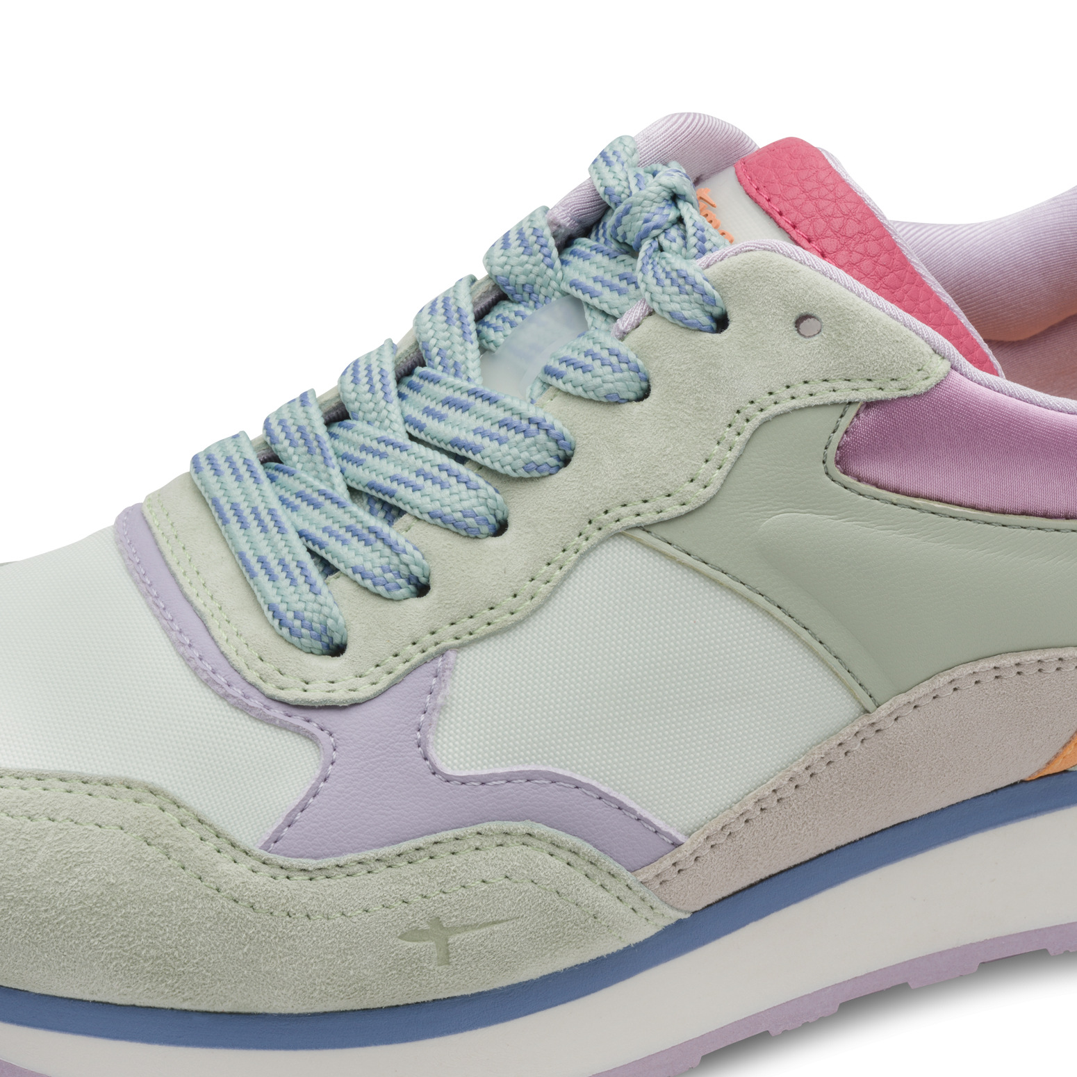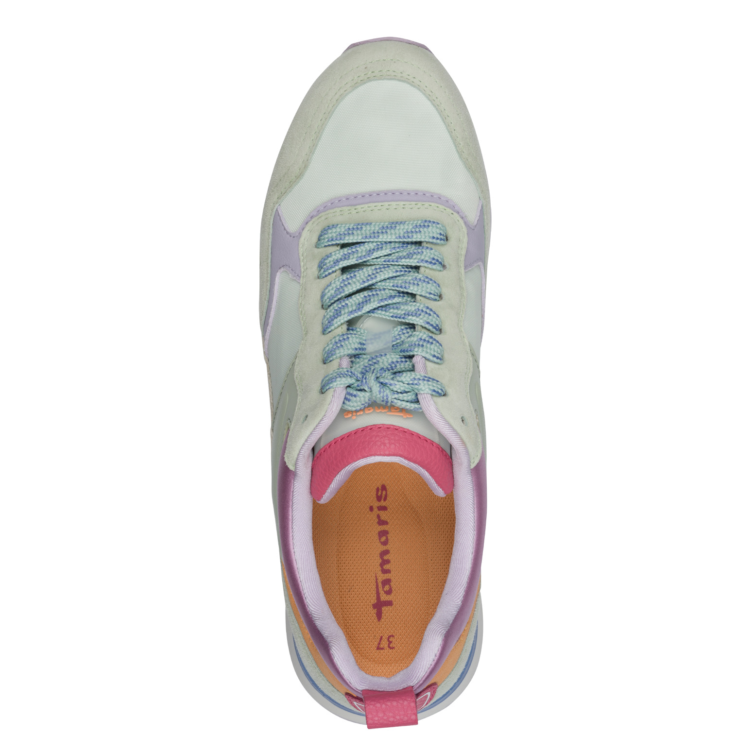 Τα Tamaris γυναικεία γκρι sneakers 1-23741-43-779 συνδυάζουν μοντέρνο σχεδιασμό και καθημερινή άνεση. Ο συνδυασμός δέρματος, υφάσματος και συνθετικού υλικού δημιουργεί ένα κομψό και ανθεκτικό sneaker που προσαρμόζεται εύκολα σε κάθε casual εμφάνιση. Η υφασμάτινη επένδυση και ο αποσπώμενος πάτος προσφέρουν ξεκούραστο περπάτημα όλη μέρα. Η σφηνοειδής σόλα ύψους 3 cm χαρίζει σταθερότητα και άνεση, ενώ το κλείσιμο με κορδόνια και η στρογγυλή μύτη ολοκληρώνουν ένα πρακτικό καθημερινό sneaker.