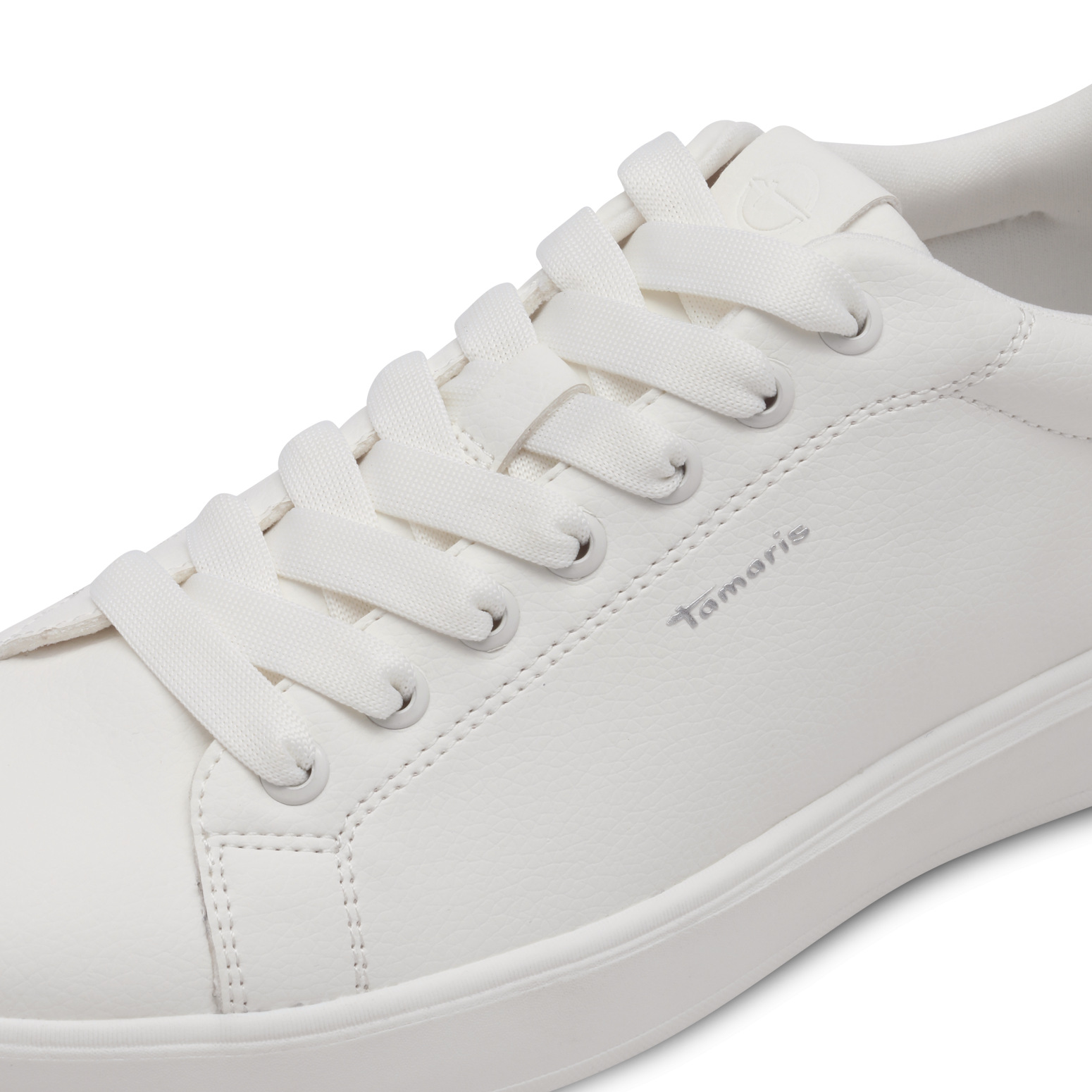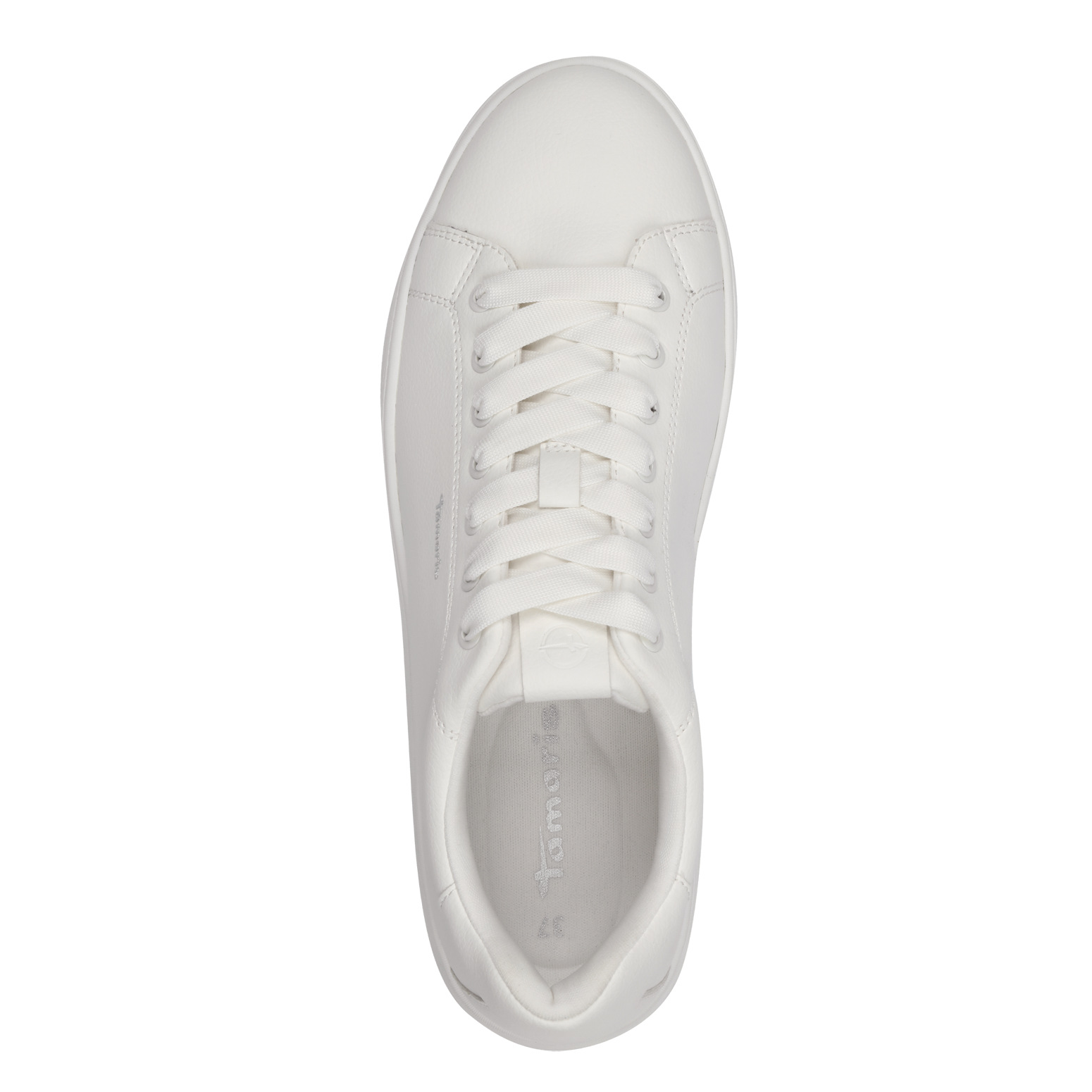 Τα Tamaris γυναικεία λευκά sneakers 1-23720-43-146 αποτελούν ιδανική επιλογή για καθημερινές εμφανίσεις με άνεση και σύγχρονο στυλ. Κατασκευασμένα από ανθεκτικό συνθετικό υλικό, προσφέρουν σταθερή εφαρμογή και ευχάριστη αίσθηση στο περπάτημα. Ο αποσπώμενος πάτος και η υφασμάτινη επένδυση συμβάλλουν σε άνεση που διαρκεί όλη μέρα. Η σφηνοειδής σόλα ύψους 3.5 cm προσφέρει σταθερότητα, ενώ το κλείσιμο με κορδόνια και η στρογγυλή μύτη ολοκληρώνουν ένα μοντέρνο sneaker για κάθε casual look.